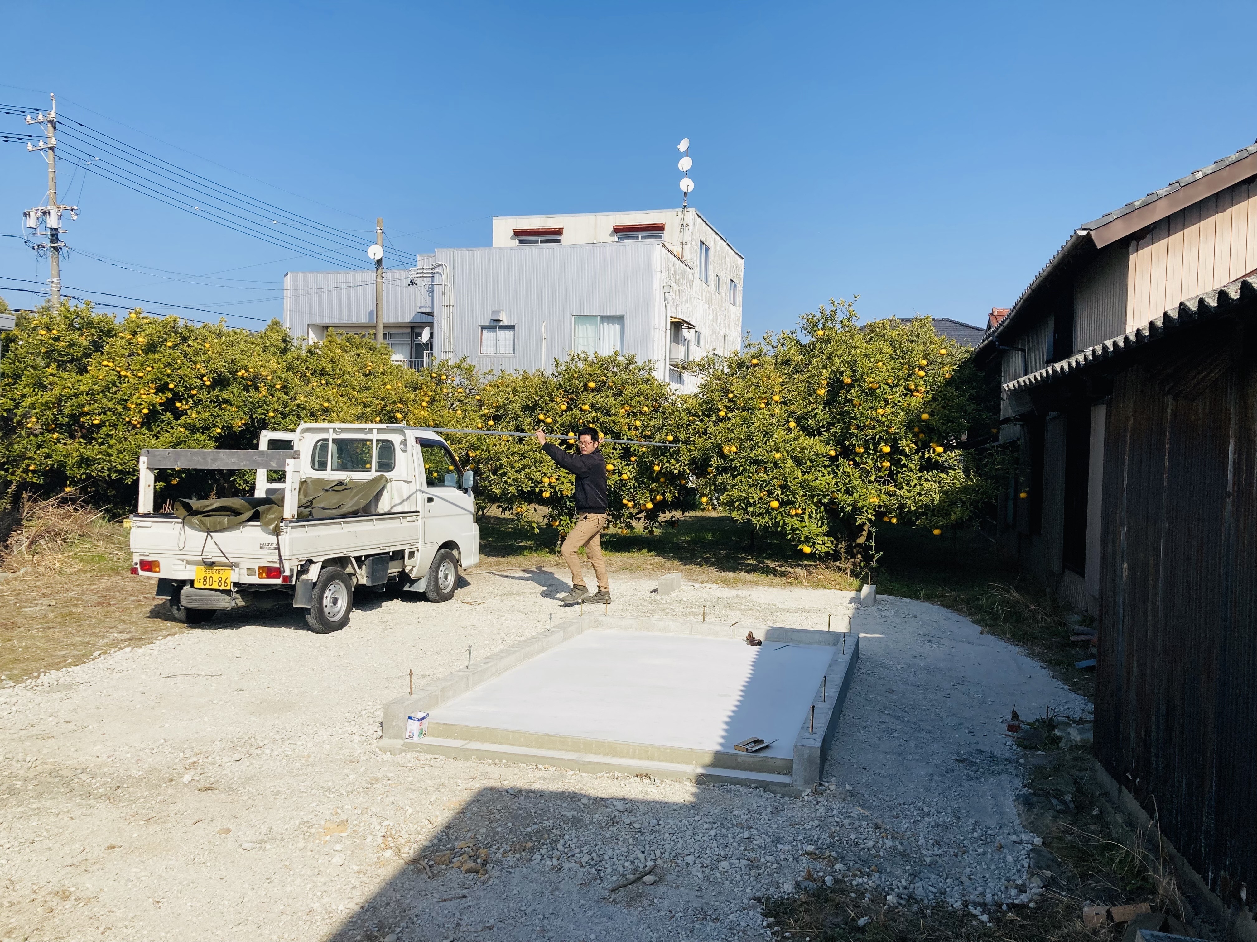 現在は基礎工事も完了して、土台を据えていきます。